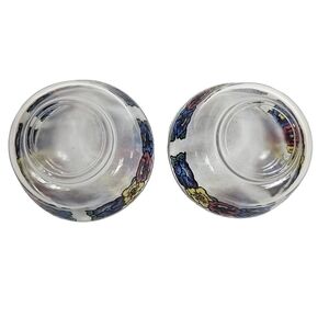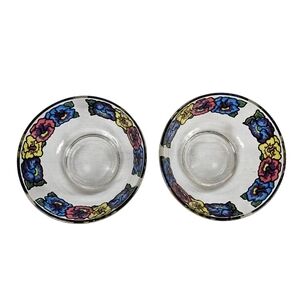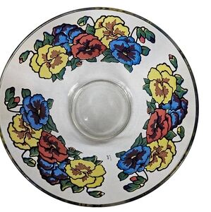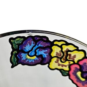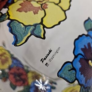 Features stunningly beautiful stained glass pansy flowers around each serving dish, set includes 1 large serving bowl and 2 small serving bowls, clear glass dishes with no clouding, vibrant colors of purple yellow blue pink and red, retro vintage 1960 1970, the large bowl is stamped with designer Pasinski Washington. This is a gorgeous addition that will treasured for years to come and talked about by your guests.