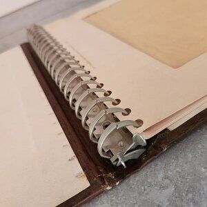 Vintage 60s 70s Photo Album Wood Grain Design Brass Gold Inlay Spiral Binding