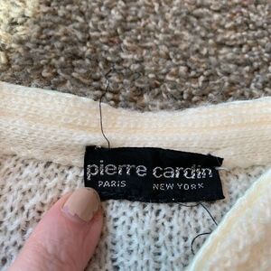 Vintage 60s 70s Pierre Cardin Cream Ivory Cardigan Sweater Puffed Small