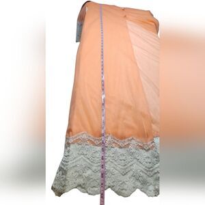 Vintage 60s 70s Robe Duster Flowy Glam BOHO Bell Sleeve Sheer Lace Coral Peach S