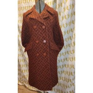 Vintage 60s 70s Rust Boucle Herringbone Double-Breasted Coat Jacket Mod Medium