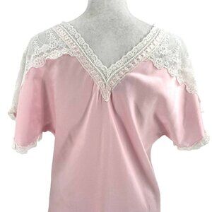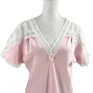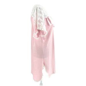 *Vintage 60s 70s Satin Lace Nightgown Mini Dress Coquette Baby Pink size Small
