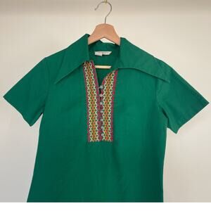 Vintage 60s 70s Sears Green Dagger Collar Top / Sz S / Folk Retro Boho Hippie