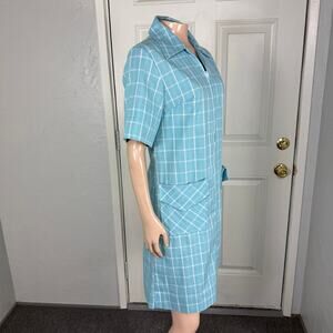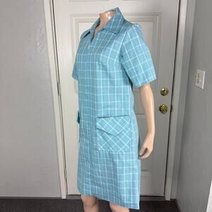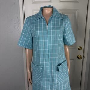 Vintage 60s 70's Sears Zip Dash House Women's Dress 10 Cotton Pockets Plaid V7
