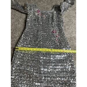 Vintage 60’s 70s Silver Sequin Mermaid Gown Dress Metallic Floral Glam Hollywood