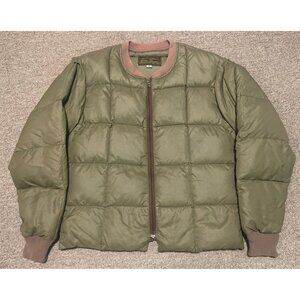Vintage 60s 70s Small Eddie Bauer Premium Goose Down Quilted Jacket Pants Suit in Green.