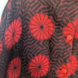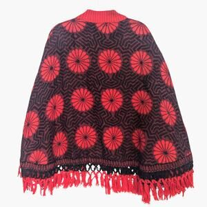 Vintage 60's 70's Sweater Poncho Button Front Red Black Geometric Flowers Flaw