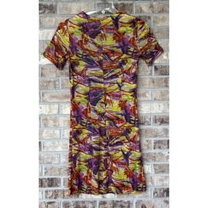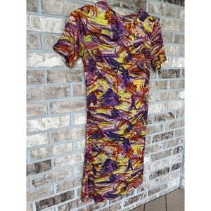 -Style Tags: handmade, boho dress, bohemian, artsy, colorful, abstract print, short sleeve, knee length, festival style, indie fashion, unique design, statement piece, retro inspired, earthy tones, relaxed fit, artistic vibe, creative style, fall colors, vintage feel, free spirited, casual chic, soft fabric, one of a kind, vibrant pattern, handmade clothing
