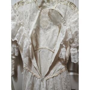 Vintage 60s 70s Victorian Ivory Bridallure Laced Wedding Dress Size 5 With Train