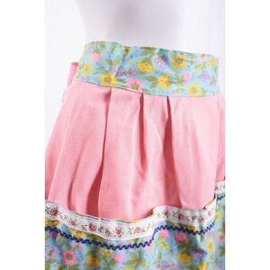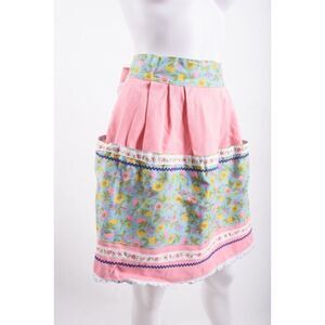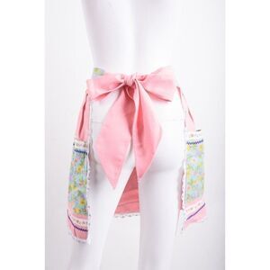 Vintage 60s 70s Womens Waist Half Apron Multi-Color Pink Floral Ties in Back