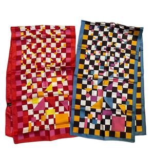 Vintage 60s 70s geometric rectangular scarves set of two