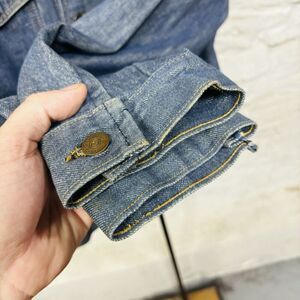 Vintage 60s 70s Sears Roebucks Selvedge Denim Jean Jacket w Patches Made in USA. Size tag is illegible, likely would have been tagged XL but listed as large based on measurements below.