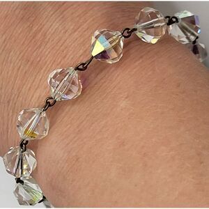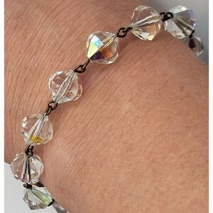 Vintage 60s AB Crystal Faceted Bracelet 7.5in | Materials: austrian crystal | Length: 7.5in | Clasp: sp0ring ring | Signed? no | Excellent vintage condition