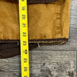 Color: Golden-brown canvas body with quilted dark brown shoulder patch, shell loop pockets across front, large utility pockets, interior game-bird lining.