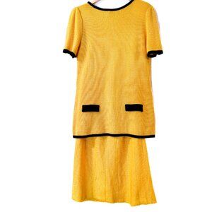 Vintage 60s Ami Yellow Black Knit Skirt Set