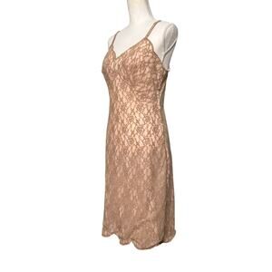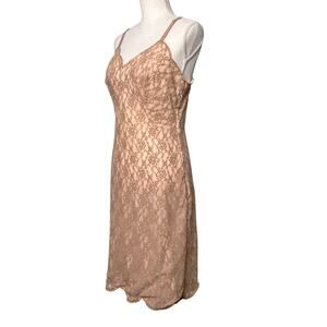 Vintage 60s Artemis Size Medium Nude Lace Fully Lined Slip Nightgown Scallop Hem