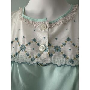 Vintage 60s Baby Blue Embroidered Floral Sleep Dress Night Gown size XL
