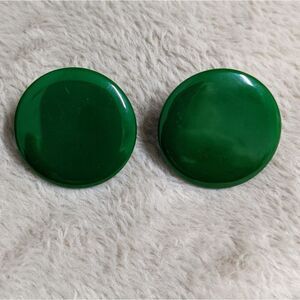Vintage 60's Bakelite Spinach Green Disc Clip Earrings