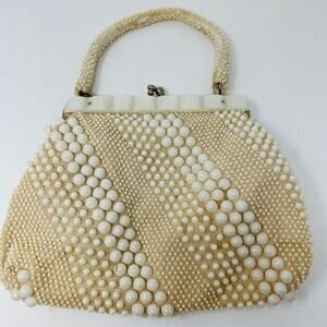 Vintage 60s Beaded Handbag Pearl Stripe Detail