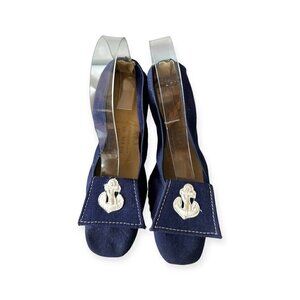 Vintage 60s Bertlyn New York, Foldable Flats, Size Medium 6-6.5, Navy Canvas