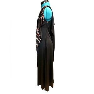 Vintage 60's Black Abstract Scarf One Shoulder Dress Theme Size S