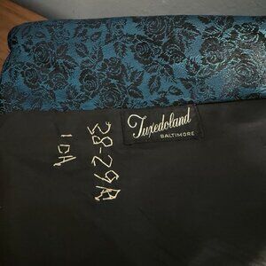 Vintage 60’s Blue Black Floral Jacquard Tuxedo Blazer Jacket Tuxedoland