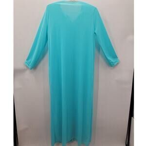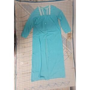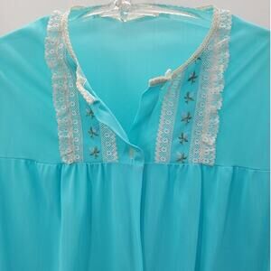 Vintage 60s Blue Embroidered Lace Button Up Dressing Gown Lingerie Maxi Dress