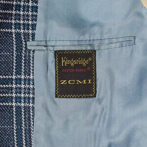 Vintage 60's Blue Plaid KINGSRIDGE Polyester Sports Coat - 42 Reg