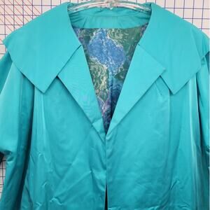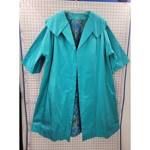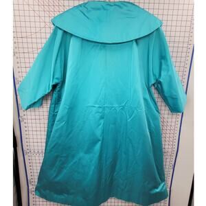 Vintage 60s Blue Satin Swing Coat Floral Lined Jacket Three Quarter Sleeve
