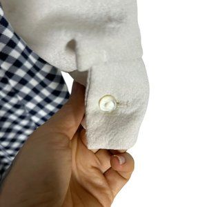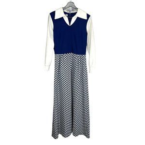 Vintage 60s Blue White Gingham Pattern Long Sleeve Full Length Dress Large