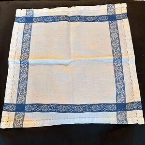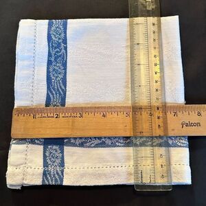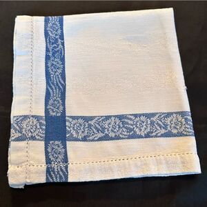 Vintage Blue Border White Jacquard Napkins (3), in great condition there may be a little yellowing in places but not noticeable.