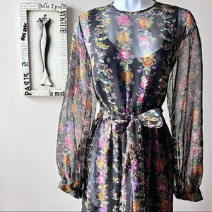 Vintage 60s Boho Cottagecore FloralāSheerĀ MaxiāLongāSleeve Goth Dress