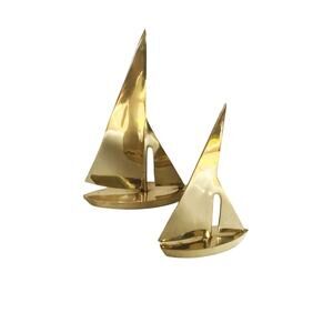 Vintage 60s Brass Sailboat Set of 2 Nautical Decor Beach Boho Brass Ocean Theme