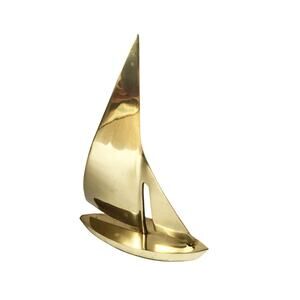 This exquisite vintage 60s pair of brass sailboats captures the timeless allure of nautical decor, perfectly blending mid-century modern style with a classic maritime theme. Their sleek, polished forms evoke the simple elegance of a bygone era, ready to catch the wind in an eternal, silent voyage. These pieces are ideal for infusing any space with a touch of beachy boho charm, bringing the serene, adventurous spirit of the ocean to a shelf, mantel, or desk.