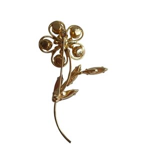 Vintage 60's Brooch Pin Flower Rhinestones Black and White Splash Floral