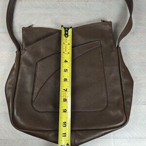 Vintage 60s Brown Genuine Leather Shoulder Bag Asymmetrical Boho Hippie