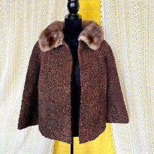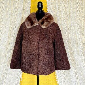 Vintage 60s Brown Persian Lamb Wool and Mink Fur Coat Size M-L