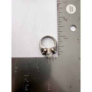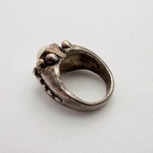 Vintage 60s Brutalist Sculptural Studio Ring Pewter & Faux Pearl