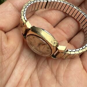 Condition: In very worn vintage condition as shown. The band is very beat up but the face of the watch still pretty. Does not run, for parts or repair or to be worn as jewelry!