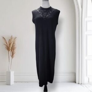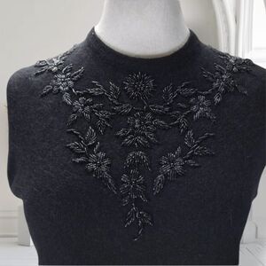 Vintage 60s Cashmere Midi Shift Dress Size M Beaded Crew Neckline Mod Sleeveless