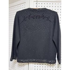 The Vintage 60s Cyn Les Wool Black Beaded Cardigan Sweater in Women's Size 38 - modern day small or medium. Wool blend.