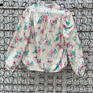 Vintage 60s DEVON butter cream pink green floral button down polyester blouse
