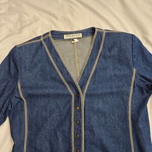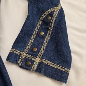 Tags: Dellarossa Boutique, Denim Jacket, Longline Denim, Women's Fashion, Size Medium, Button-Up Jacket, Casual Outerwear, Blue Denim Jacket, Women's Denim Fashion, Stylish Denim, Contrast Stitching, Layering Jacket, Fall Fashion