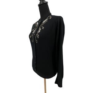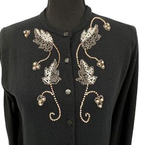 Vintage 60s Dorset Beaded Cardigan Sweater Black Orlon Knit Cropped Fit Small