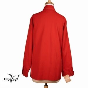 Vintage 60s Dress Barn Snap Front Red Blouse 14 Top Stitching Paper Tag -Hey Viv