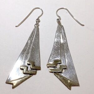 Vintage 60s Earrings Silver Brass Handmade