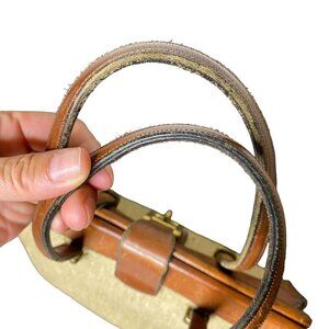 Vintage 60s Etienne Aigner French Leather & Woven Handbag w/ Turn-Lock Closure