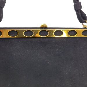 Vintage 60s Evening Bag Black Velvet Top Handle Ornate Gold Trim Push Lock Clasp