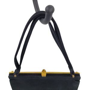 60s Footnotes Evening Bag Velvet Top Handle Ornate Gold Trim Push Clasp