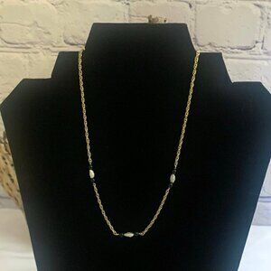 Vintage 1960s onyx and pearl gold-filled necklace.